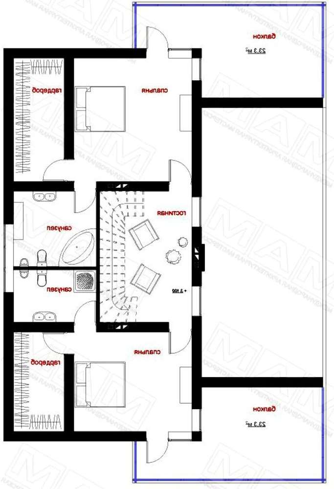 проект в зеркальном отображении позволит органично вписать дом в окружающий ландшафт.
