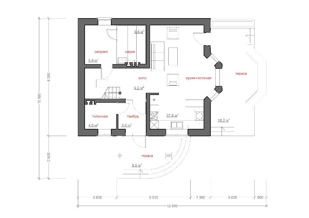 • Первый этаж: