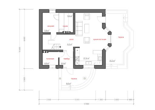 Небольшой, но очень уютный домик с двумя террасами и балкончиком – настоящая находка для хозяев, которые ценят удобство и комфорт. Дом очень светлый и дружелюбный. Наличие небольшой террасы позволяет хозяевам принимать гостей на свежем воздухе. В плохую же погоду можно перебраться в гостиную.