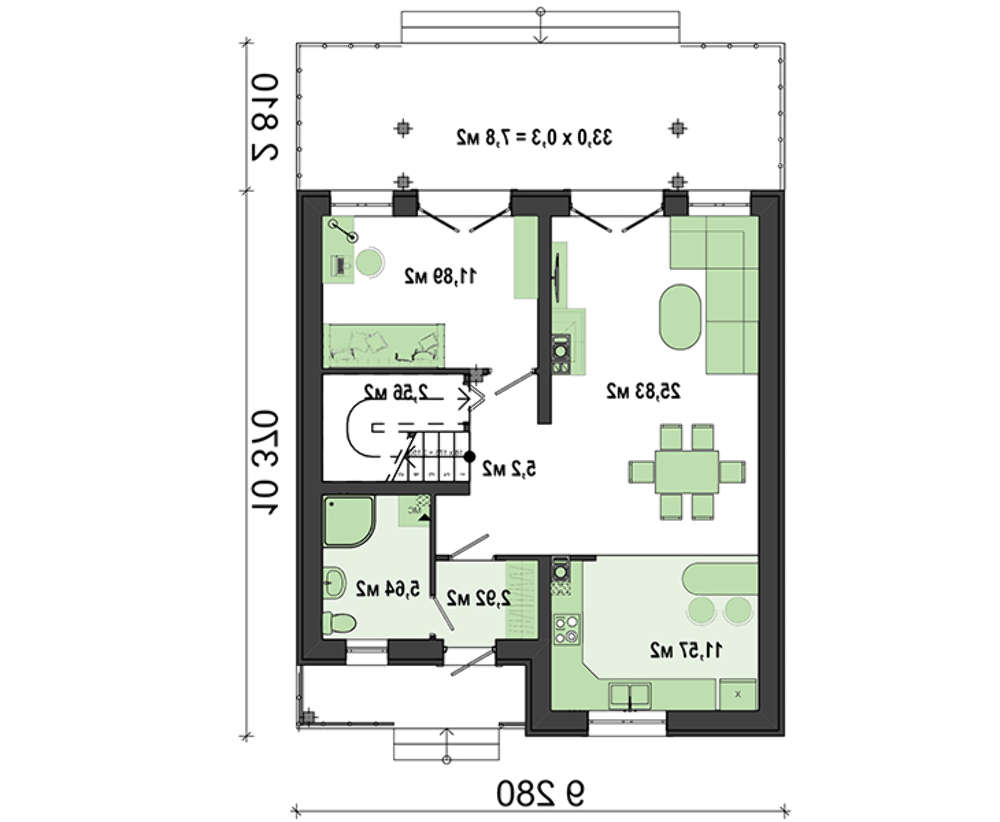 проект в зеркальном отображении позволит органично вписать дом в окружающий ландшафт.