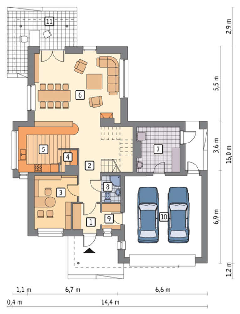Проект высокого дома с террасой на втором этаже 4M6146a