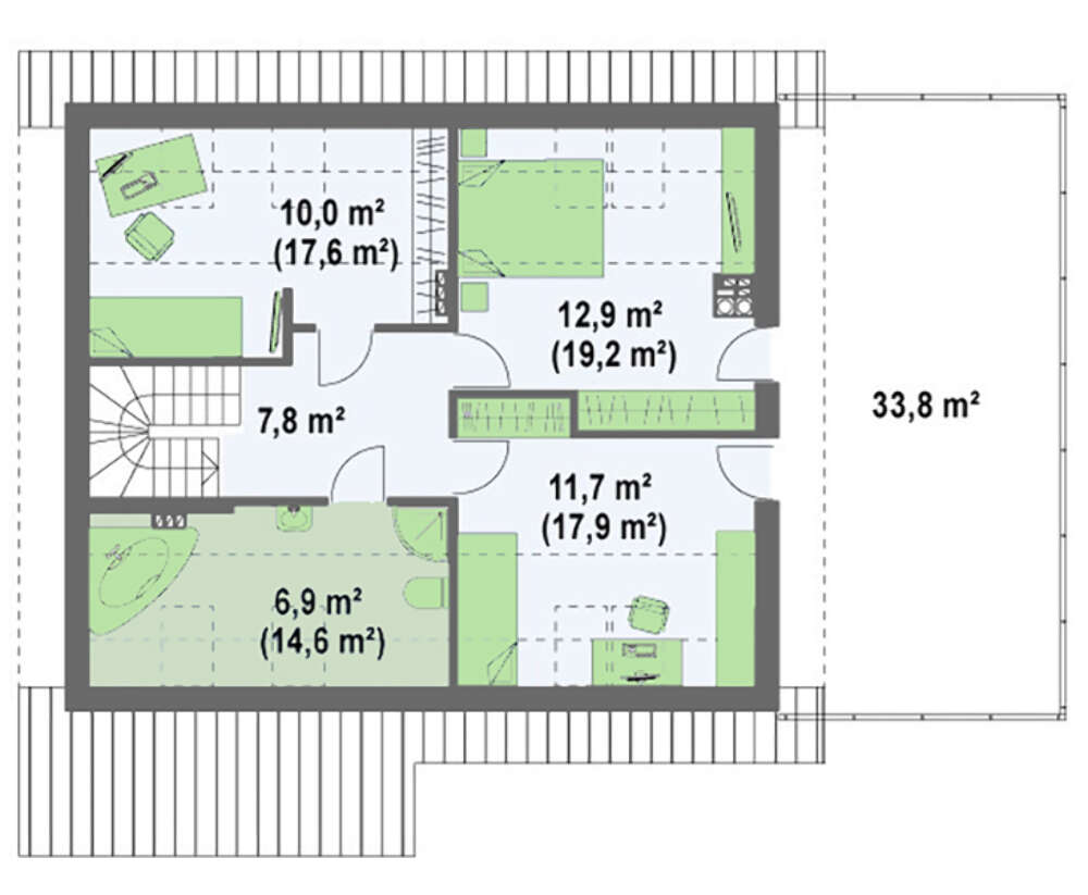 • 4M402 Проект яркого коттеджа с большой террасой на втором этаже