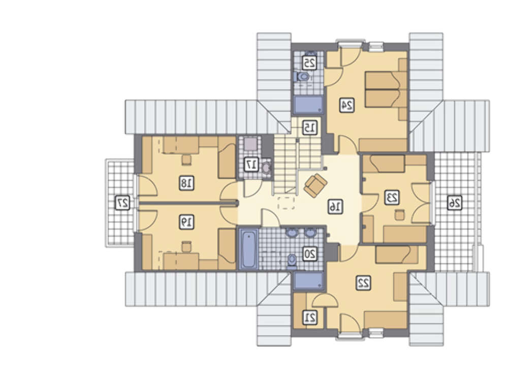 проект в зеркальном отображении позволит органично вписать дом в окружающий ландшафт.