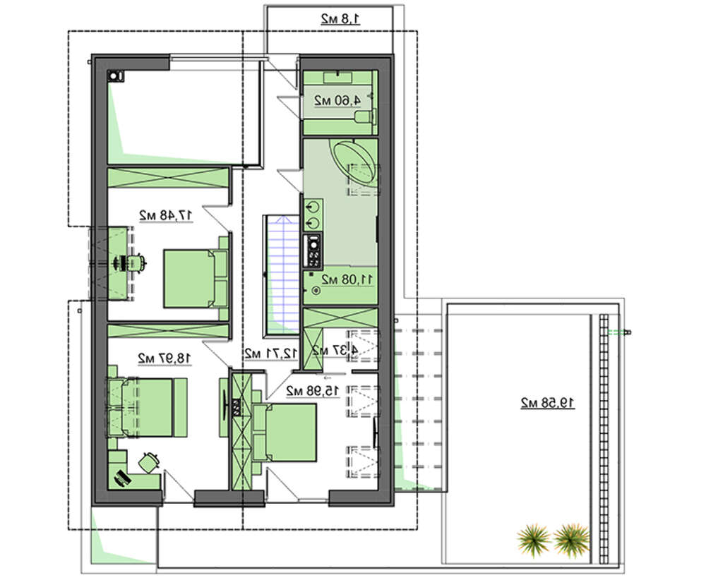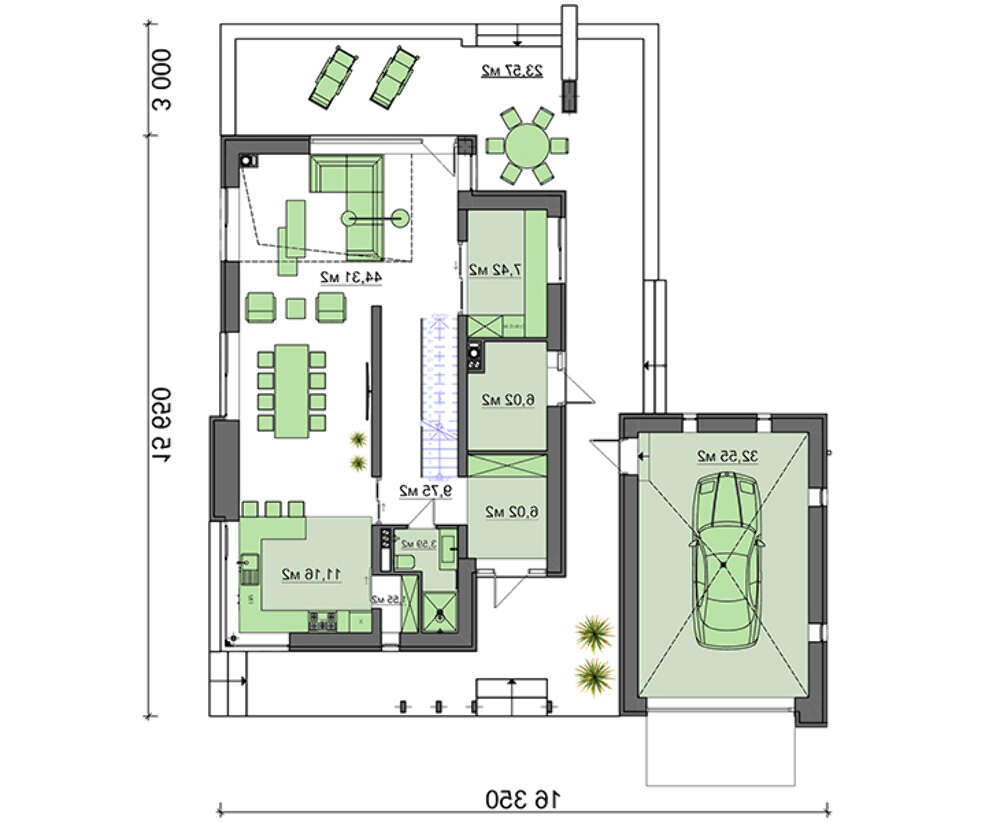 проект в зеркальном отображении позволит органично вписать дом в окружающий ландшафт.