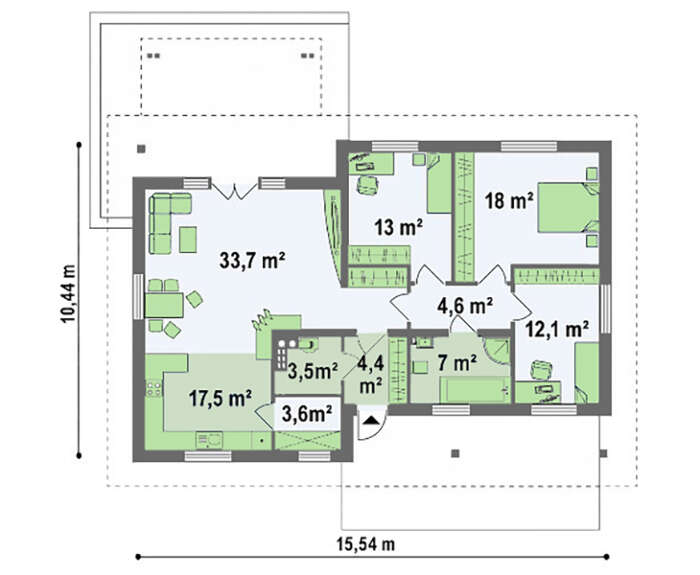 Минимальное количество внутренних перегородок способствует рациональному использованию полезной площади.