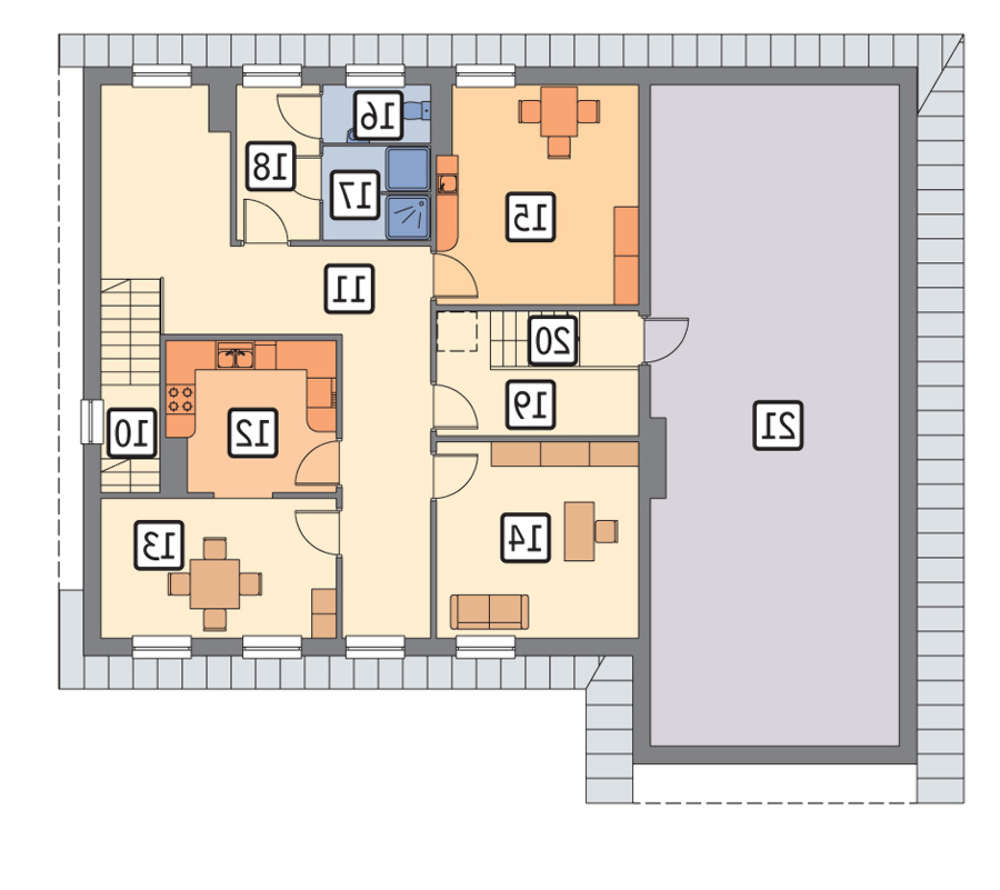 проект в зеркальном отображении позволит органично вписать дом в окружающий ландшафт.