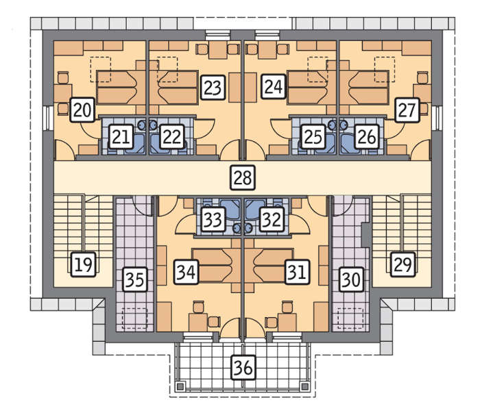 Проект содержит три раздела – Архитектурный, Конструктивный и Инженерный: водоснабжение, отопление, вентиляция, канализация, электроснабжение (приобретается за дополнительную плату) + Пояснительная записка.