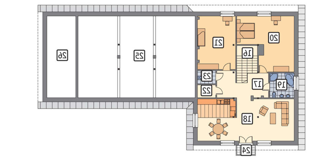 Проект содержит три раздела – АрхитектурныйКонструктивный и Инженерный: водоснабжение, отопление, вентиляция, канализация, электроснабжение (приобретается за дополнительную плату) + Пояснительная записка.