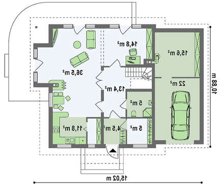 Проект жилого коттеджа из газоблоков площадью 201 кв.м. 4M7051