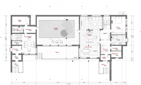 Проект жилого загородного дома с бассейном внутри 4M1884