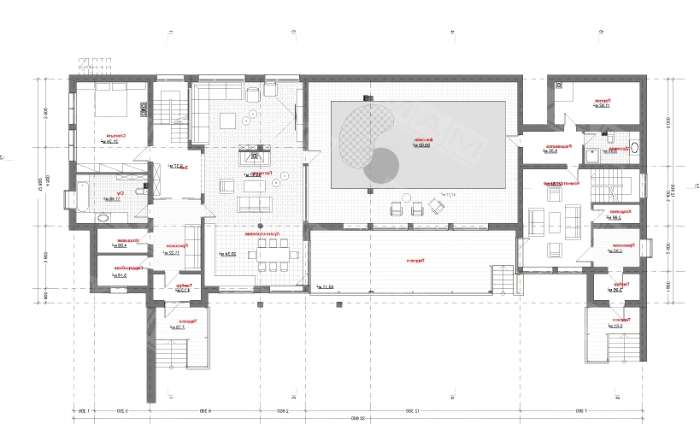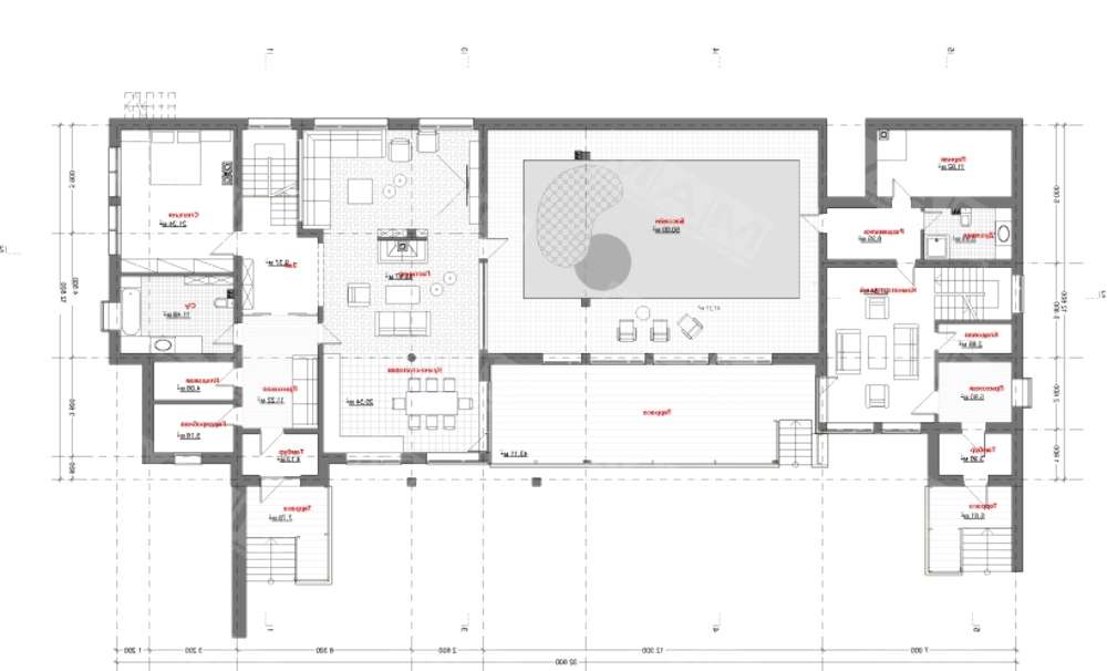 Проект жилого загородного дома с бассейном внутри 4M1884