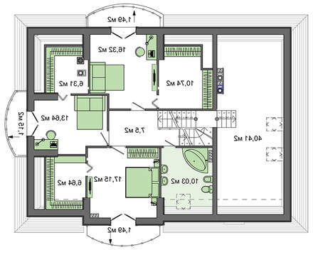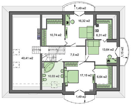 Внимания заслуживает встроенный гараж. Хозяин получает возможность хранить и обслуживать авто в комфортных условиях. К гаражу примыкает просторное помещение, которое используют как домашнюю мастерскую. На втором этаже находятся три личные спальни жильцов особняка. Они разной площади, все имеют собственную гардеробную комнату и выход на балкон. Здесь же на уровне расположен санузел.