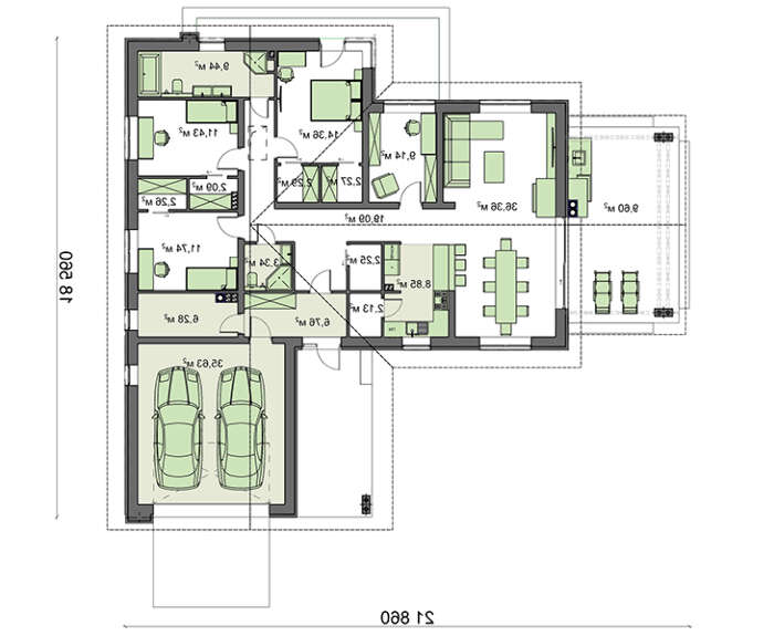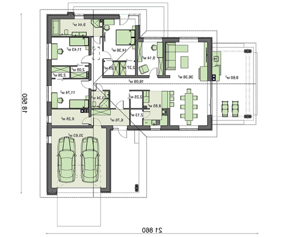 проект в зеркальном отображении позволит органично вписать дом в окружающий ландшафт.