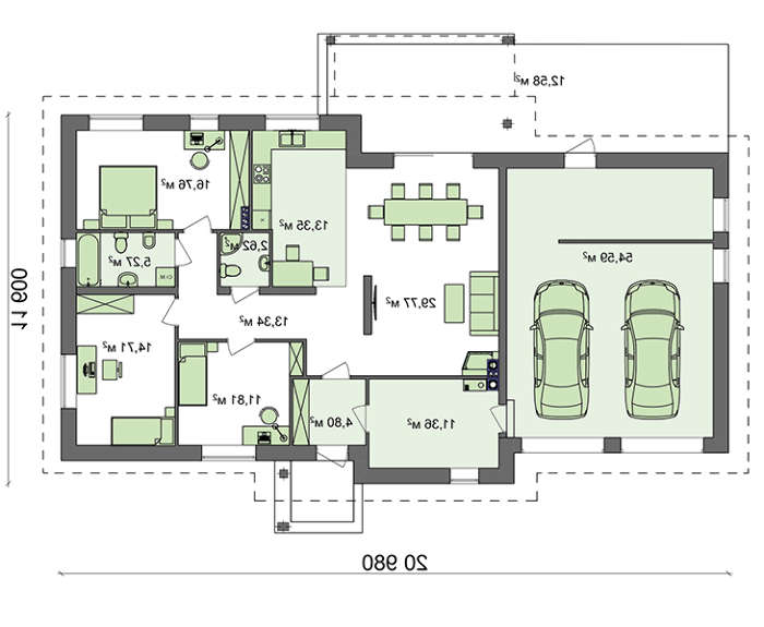 проект в зеркальном отображении позволит органично вписать дом в окружающий ландшафт.