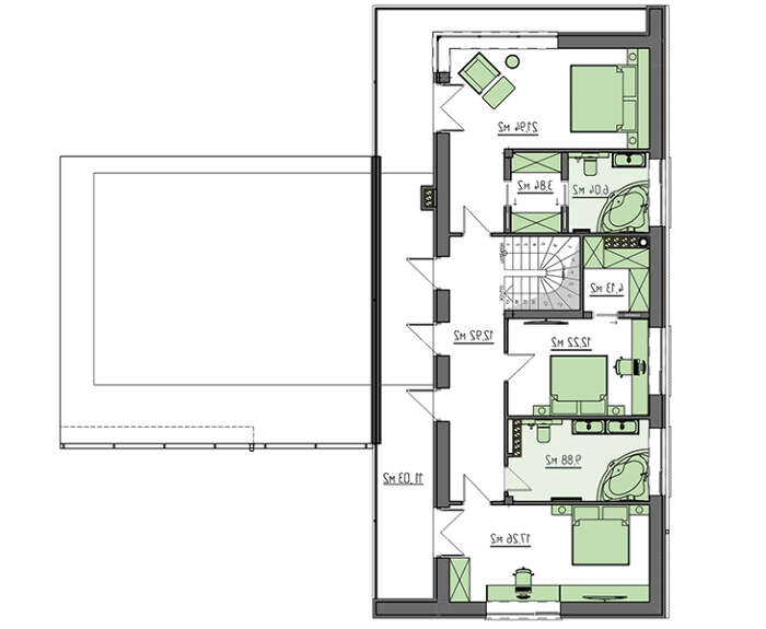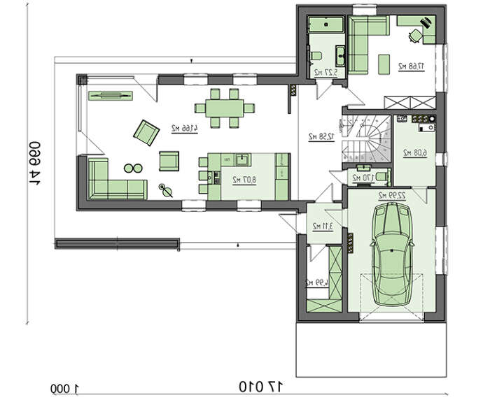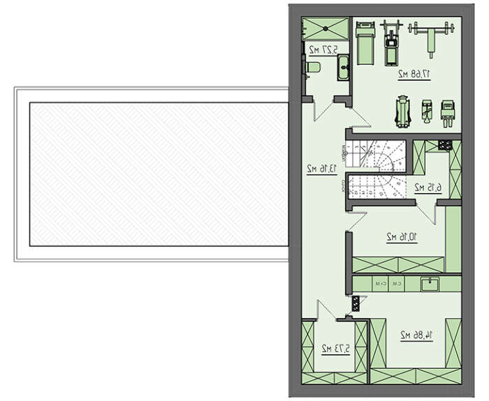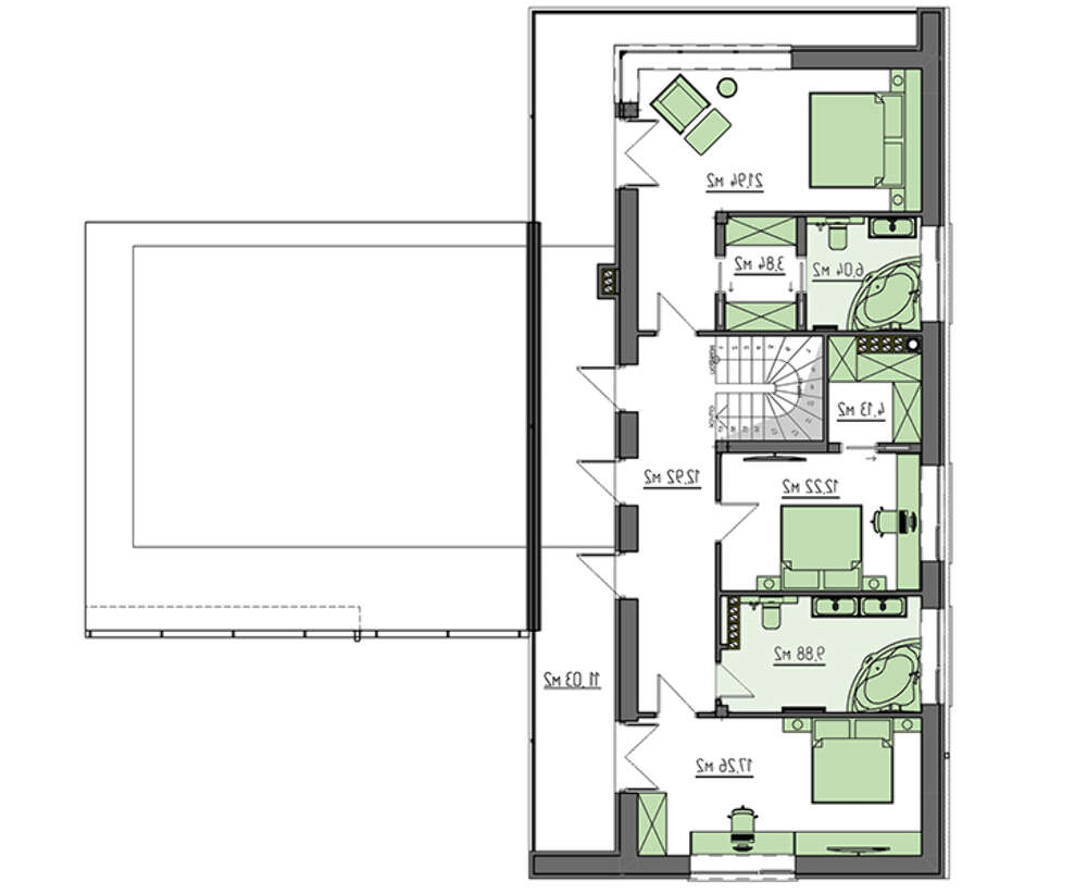 проект в зеркальном отображении позволит органично вписать дом в окружающий ландшафт.