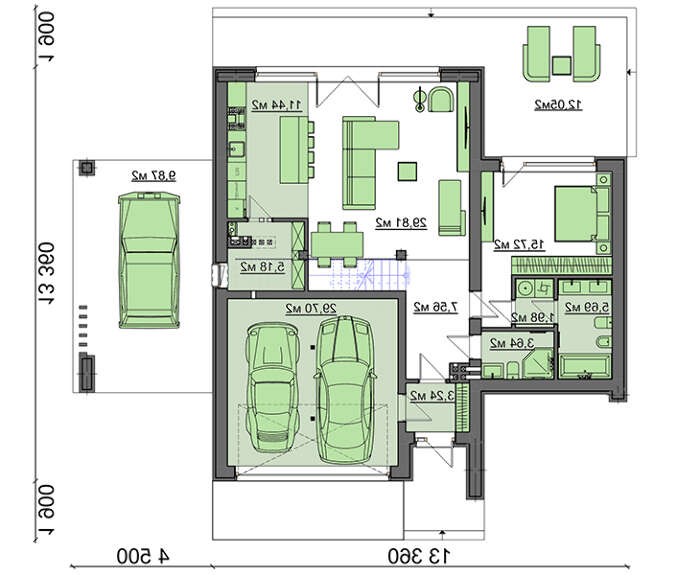 проект в зеркальном отображении позволит органично вписать дом в окружающий ландшафт.