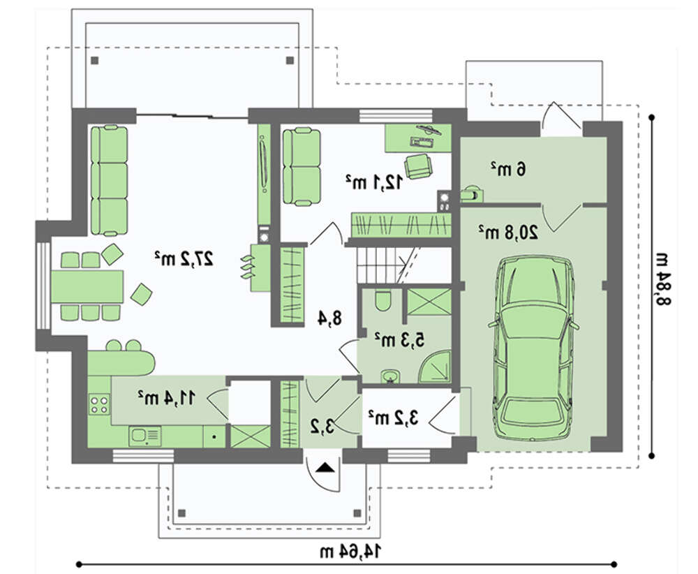 Проект коттеджа с мансардой и гаражом для 1 авто
