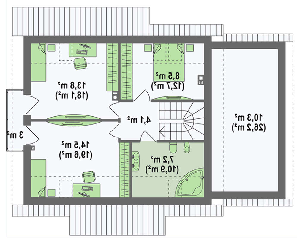 Готовый проект дома с мансардой общей площадью 188 кв.м. Жилая площадь 116 кв.м.