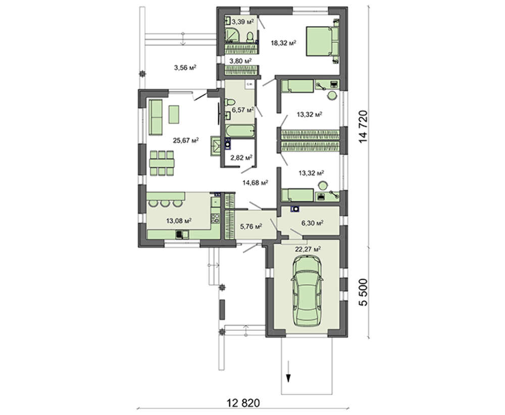 Проект содержит три раздела – АрхитектурныйКонструктивный и Инженерный: водоснабжение, отопление, вентиляция, канализация, электроснабжение (приобретается за дополнительную плату) + Пояснительная записка.