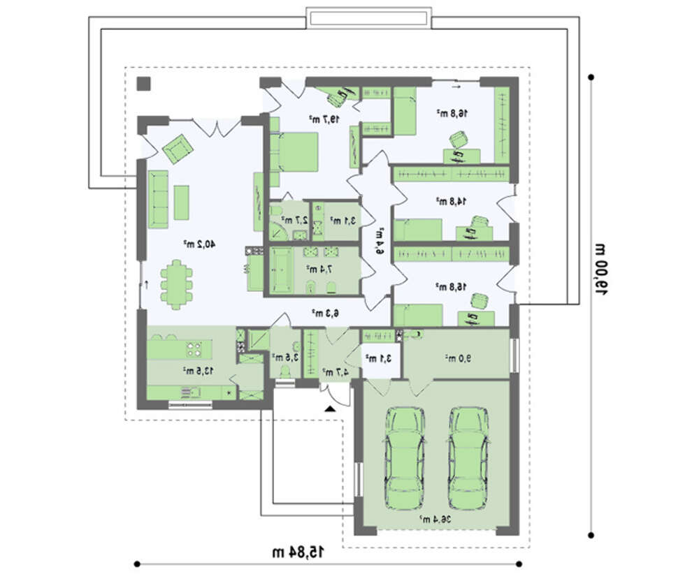 проект в зеркальном отображении позволит органично вписать дом в окружающий ландшафт.