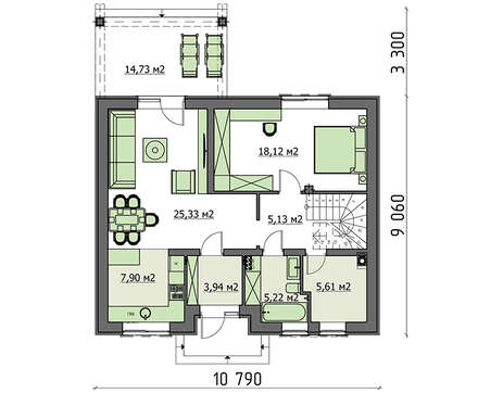 При разработке коттеджа использованы современные материалы и передовые строительные технологии. Прямоугольная коробка из газобетонных блоков возводится на ленточном монолитном фундаменте и покрывается двухскатной кровлей из металлочерепицы.