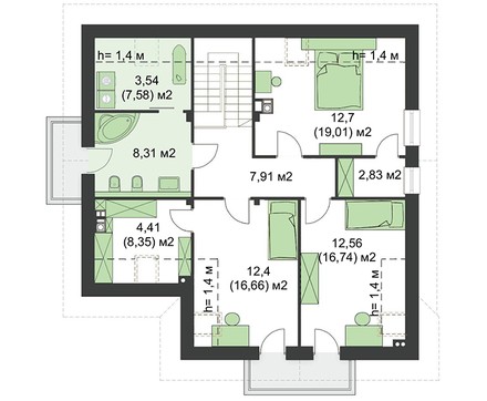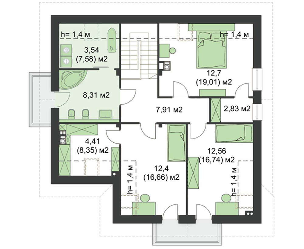 Приятного вида симпатичный двухэтажный дом предлагает своим жильцам четыре спальни, что позволяет предлагаемый проект рекомендовать большой семье из нескольких поколений. Под кровлей серого благородного оттенкаспрятаны светлые, покрытые деревянными панелями стены. Цоколь коттеджа и пространство крылечка декорированы кирпичной кладкой. Для утреннего чаепития и вечерних романтических встреч подготовлены небольшие балконы. Их стеклянные ограждения соответствуя современным архитектурным стилям, помогут жилому дому надолго оставаться в тренде.