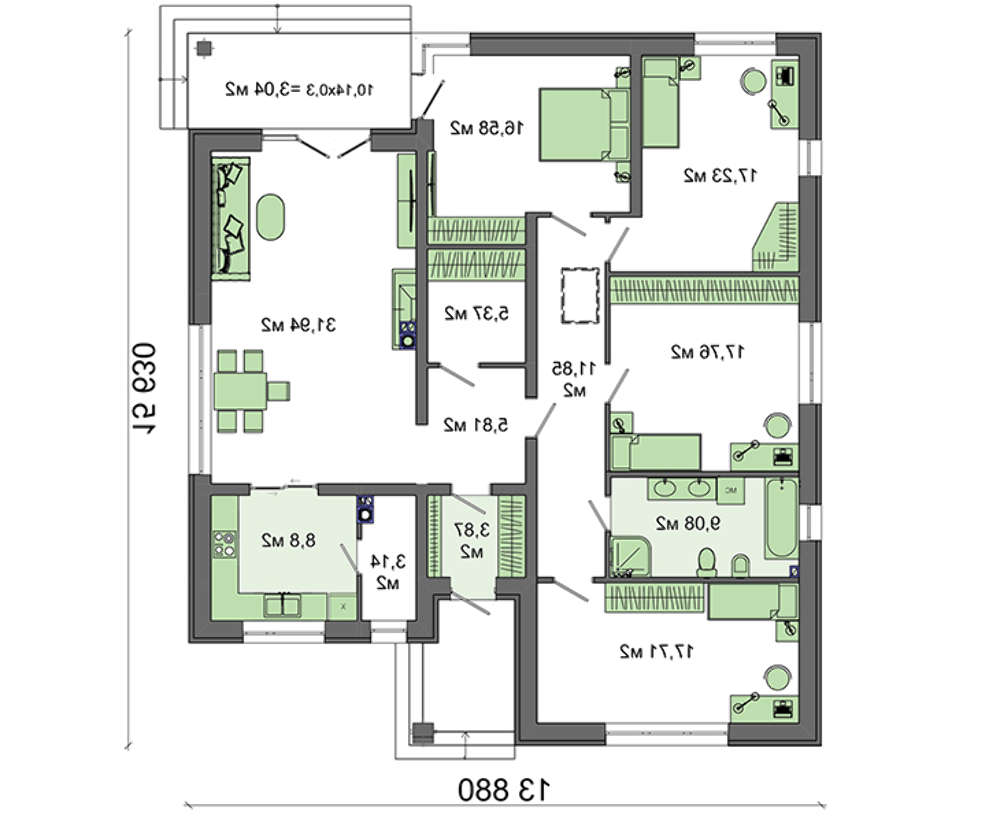 проект в зеркальном отображении позволит органично вписать дом в окружающий ландшафт.