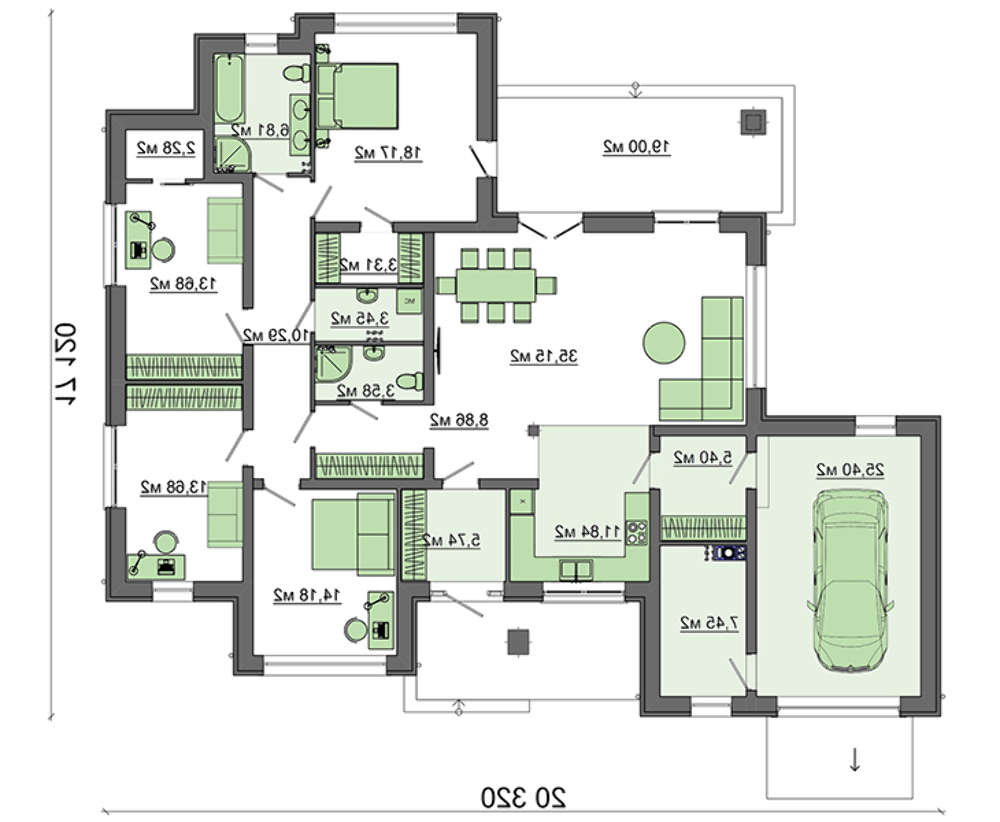 проект в зеркальном отображении позволит органично вписать дом в окружающий ландшафт.
