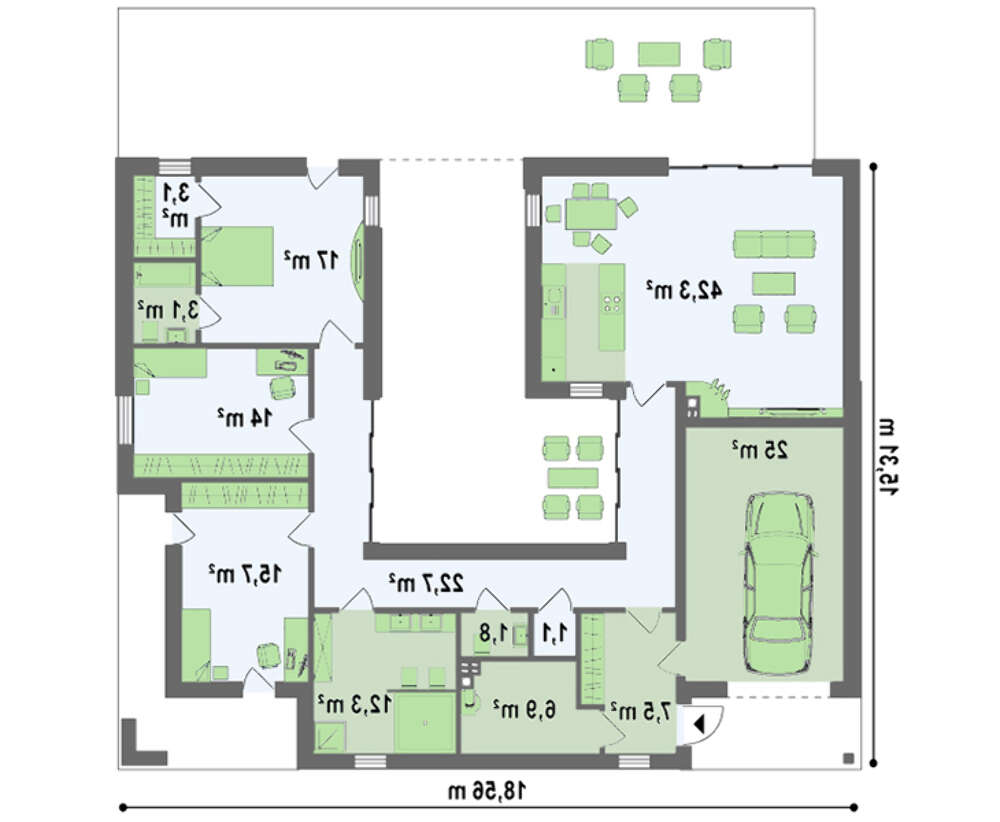 Шикарный одноэтажный дом с внутренним двориком 4M605