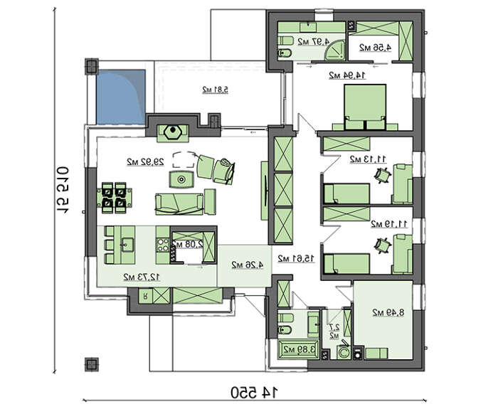 проект в зеркальном отображении позволит органично вписать дом в окружающий ландшафт.