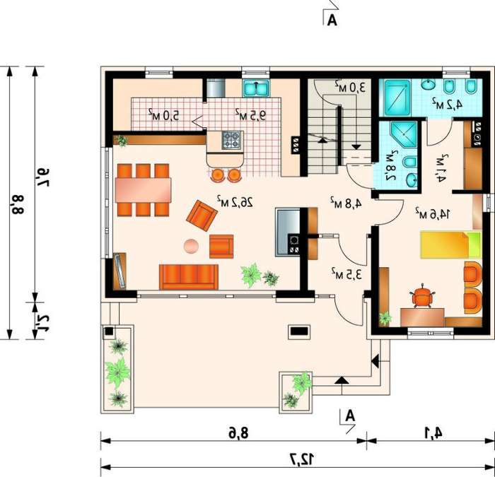 проект в зеркальном отображении позволит органично вписать дом в окружающий ландшафт.
