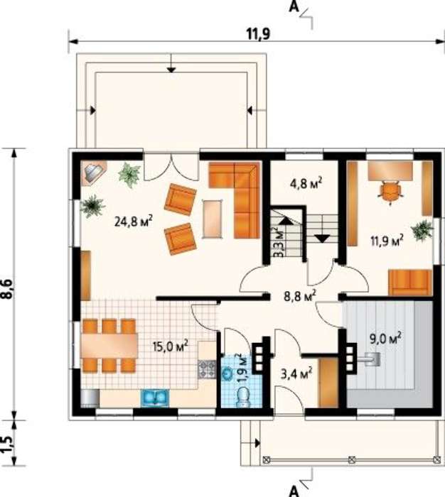 • 4M3694 Симпатичный двухэтажный коттедж со стильным входным крыльцом