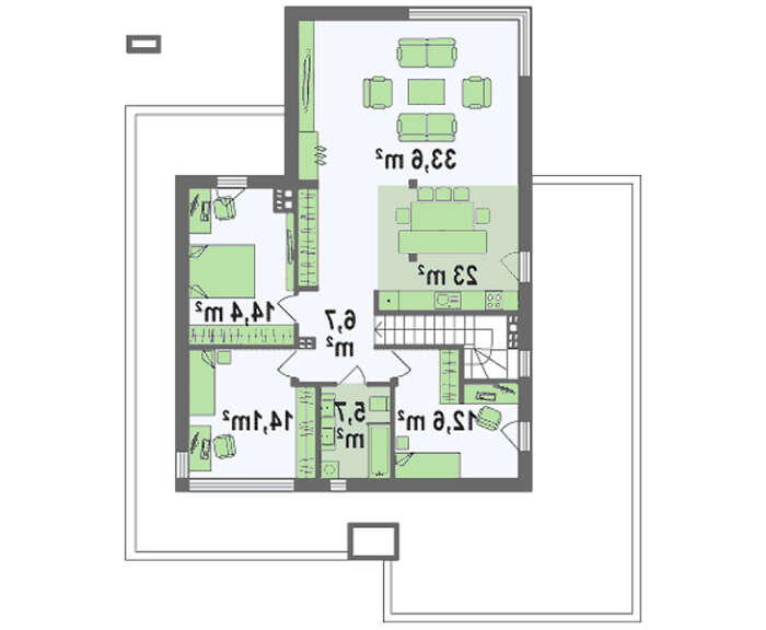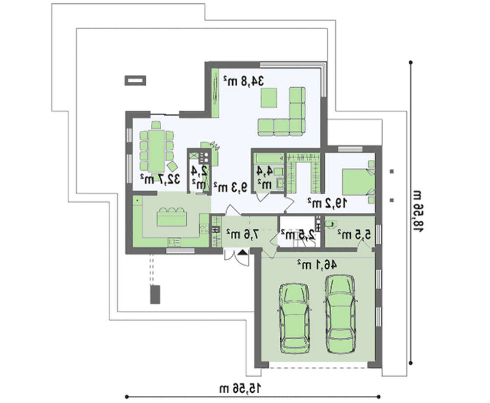 Дружная семья, ведущий публичный образ жизни и предпочитающая большие пространства, найдет отдушину на просторах современного двухэтажного коттеджа с плоской кровлей и гаражом на две машины. Серьезное внушающее уважение строение покорит самое требовательное сердце.