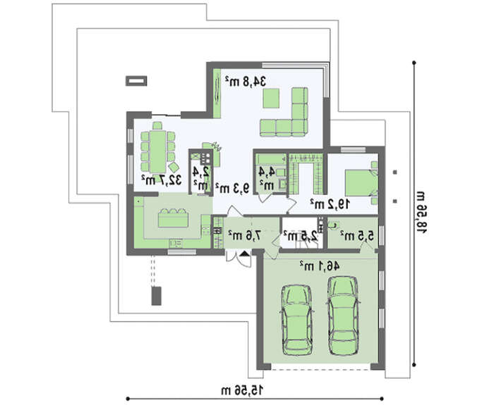 • 4M673a Современный двухэтажный дом с плоской кровлей с гаражом на две машины