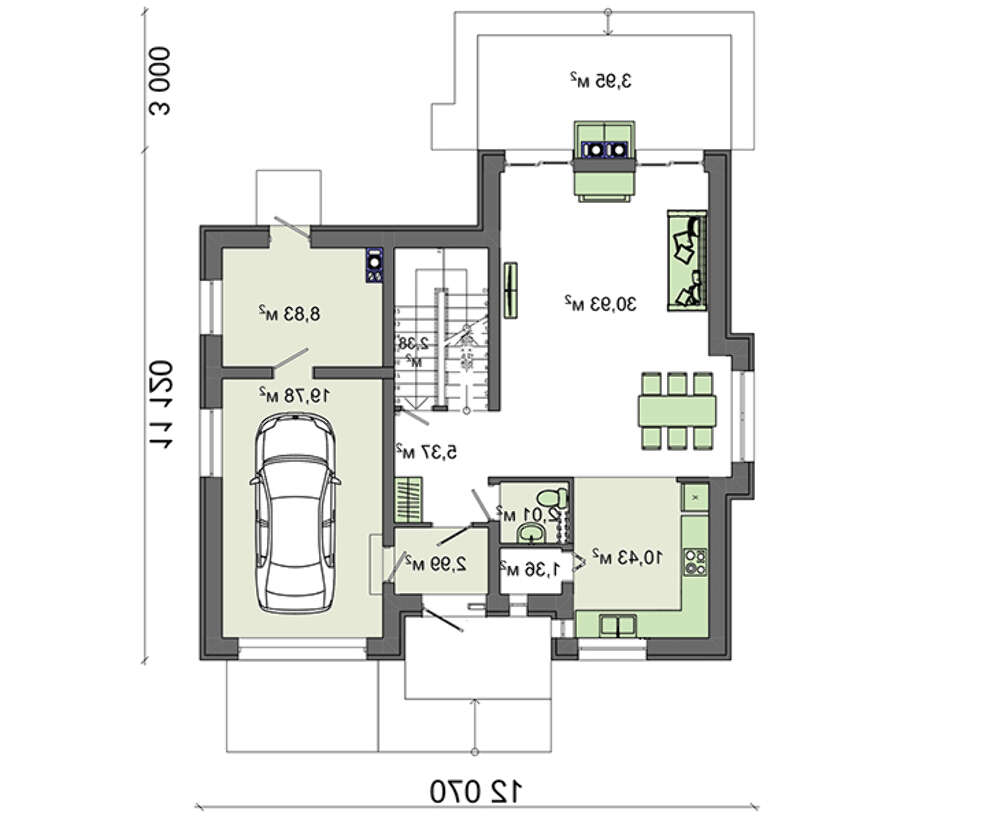 проект в зеркальном отображении позволит органично вписать дом в окружающий ландшафт.