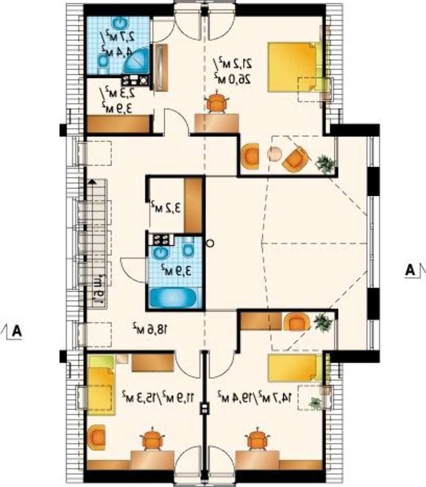 проект в зеркальном отображении позволит органично вписать дом в окружающий ландшафт.