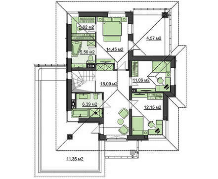 Личных комнат три. Все они на втором этаже. Наиболее благоустроены хозяйские хоромы, которые включают собственную гардеробную и санузел.