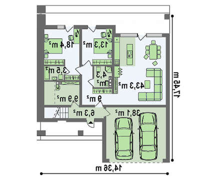 проект в зеркальном отображении позволит органично вписать дом в окружающий ландшафт.