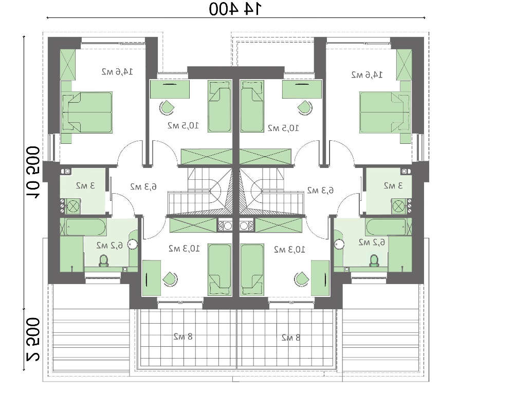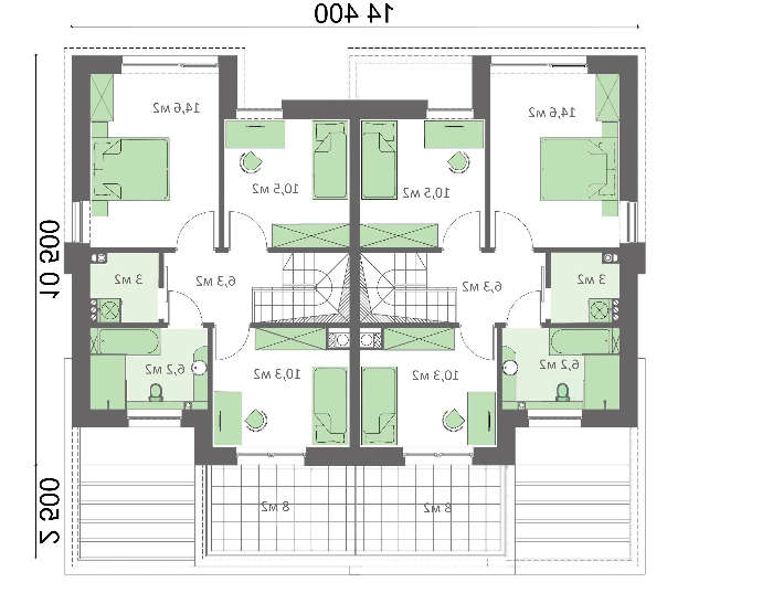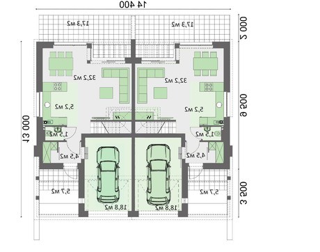 Стильный таунхаус рассчитан на проживание членов двух семей. Коттеджи подобной планировки помогают хозяевам сэкономить на строительстве за счет наличия одной общей стены. Ввиду близости проживания, проекты таунхаусов часто выбирают представители одной семьи, но разных поколений. Симметричное расположение комнат ставит владельцев в равные условия, что порою очень важно.