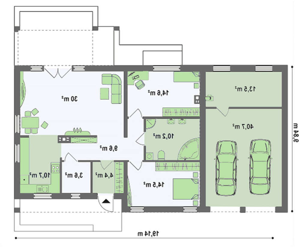 проект в зеркальном отображении позволит органично вписать дом в окружающий ландшафт.