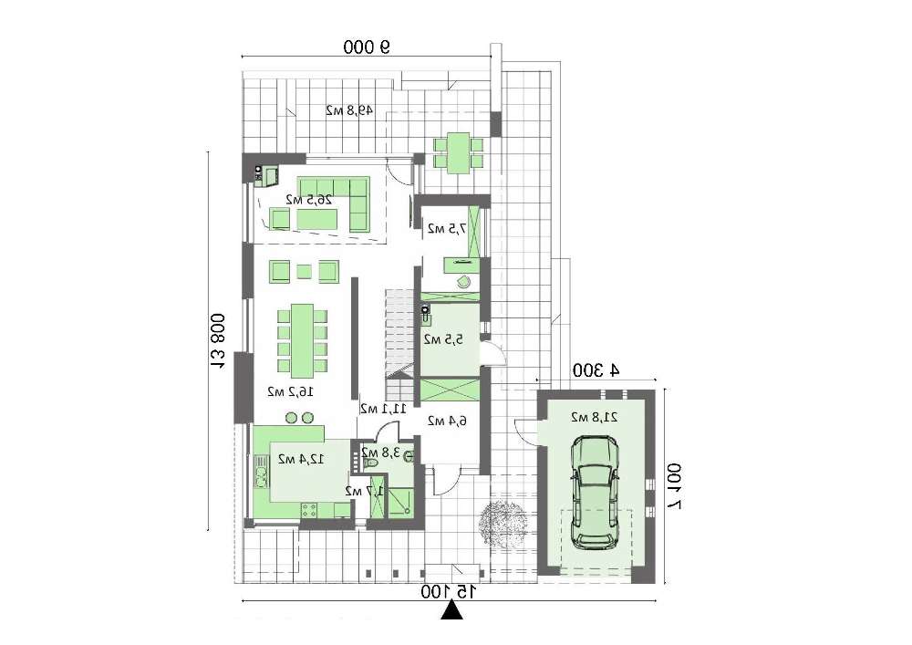 проект в зеркальном отображении позволит органично вписать дом в окружающий ландшафт.
