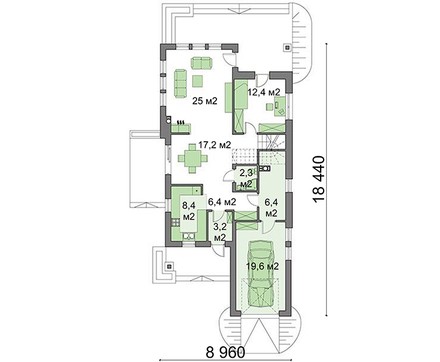Проект содержит три раздела – АрхитектурныйКонструктивный и Инженерный: водоснабжение, отопление, вентиляция, канализация, электроснабжение (приобретается за дополнительную плату) + Пояснительная записка.