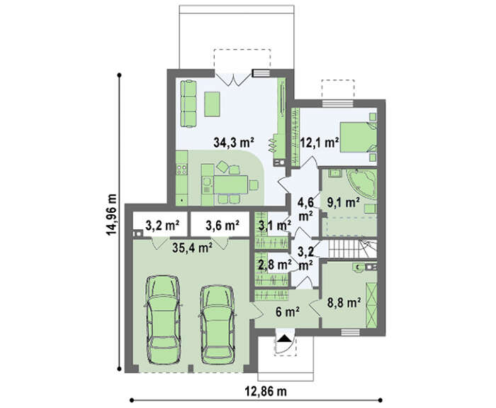 Проект содержит три раздела – Архитектурный, Конструктивный и Инженерный: водоснабжение, отопление, вентиляция, канализация, электроснабжение (приобретается за дополнительную плату) + Пояснительная записка.