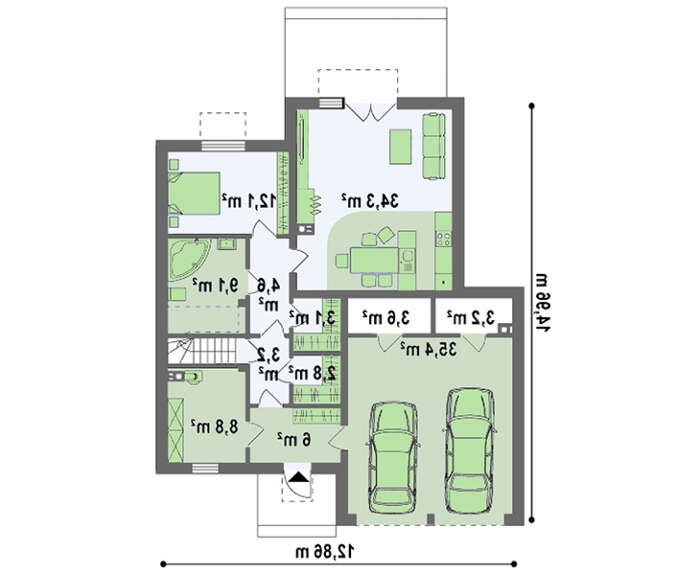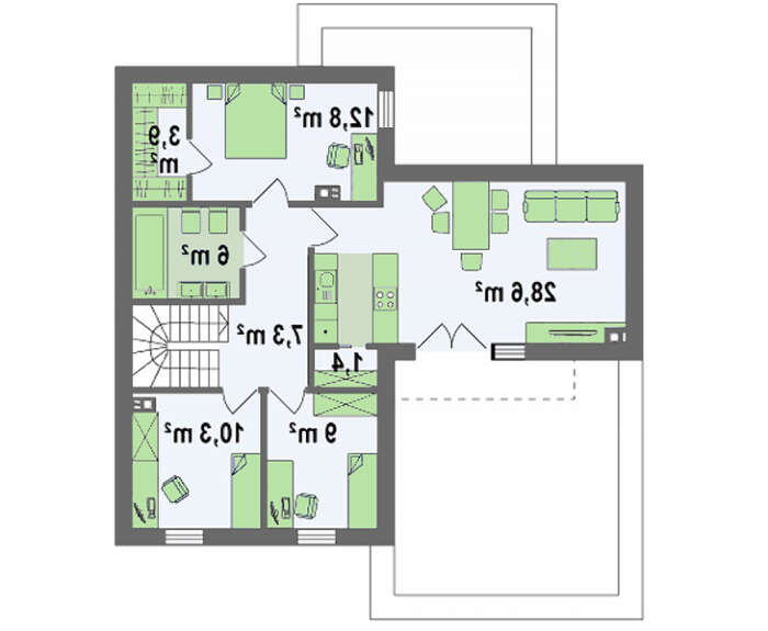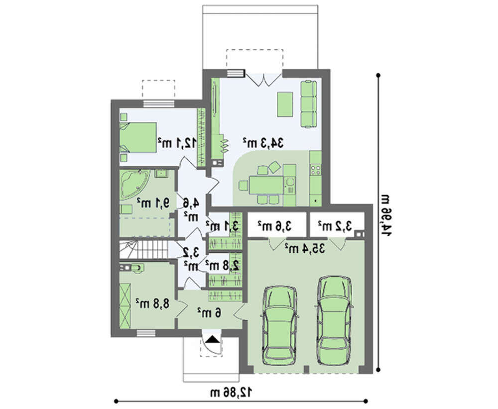 проект в зеркальном отображении позволит органично вписать дом в окружающий ландшафт.