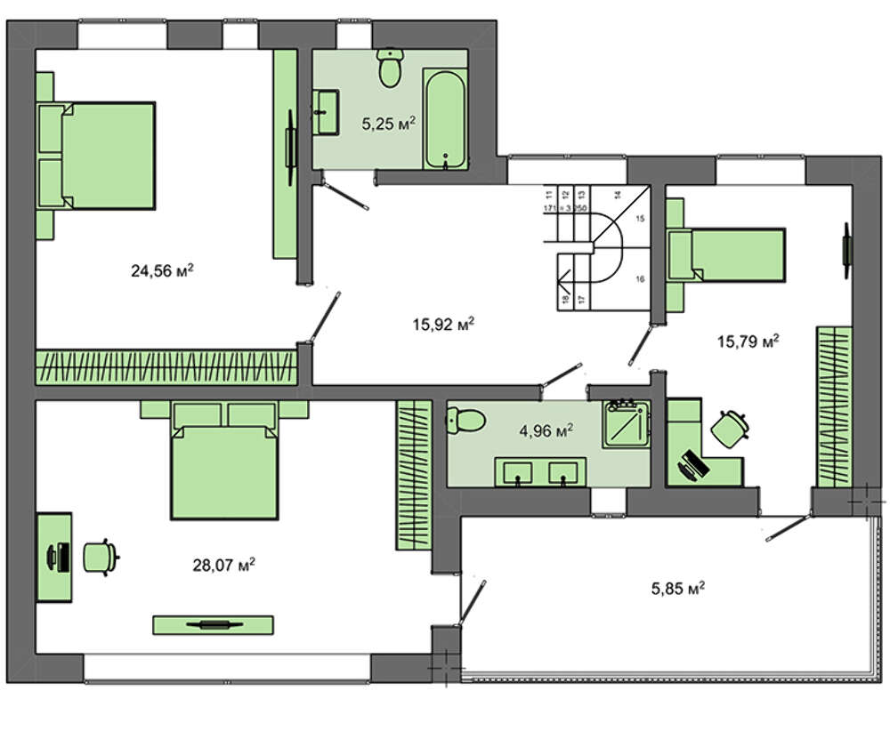 | Количество санузлов: | 3 |