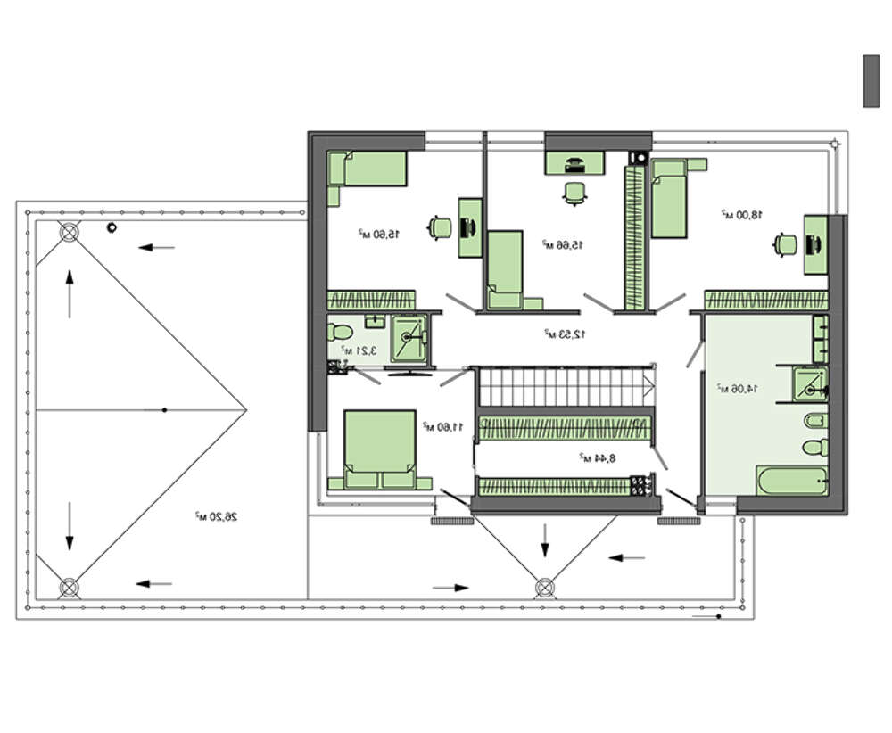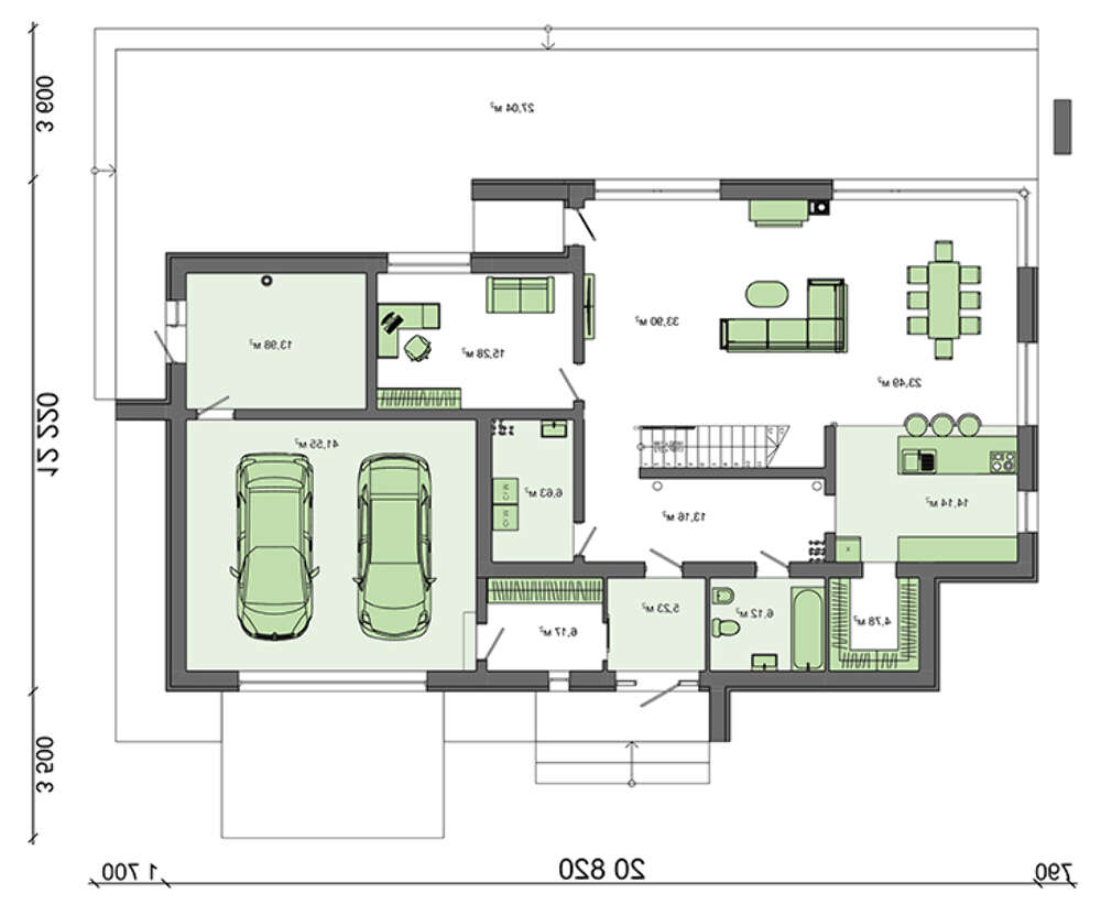 проект в зеркальном отображении позволит органично вписать дом в окружающий ландшафт.