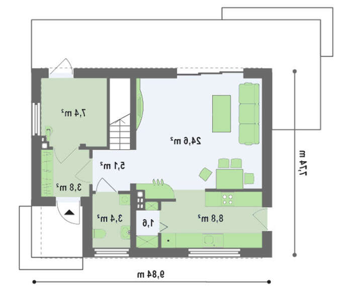 проект в зеркальном отображении позволит органично вписать дом в окружающий ландшафт.