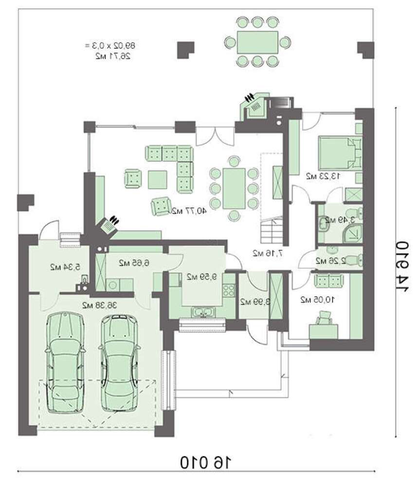 проект в зеркальном отображении позволит органично вписать дом в окружающий ландшафт.