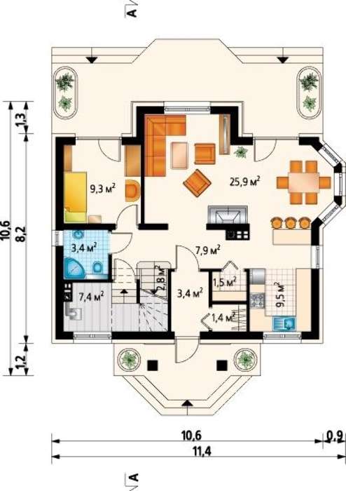 | Высота дома: | 8.60 м |