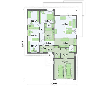 • 4M438 Уютный одноэтажный дом в классическом стиле с фронтальным гаражом